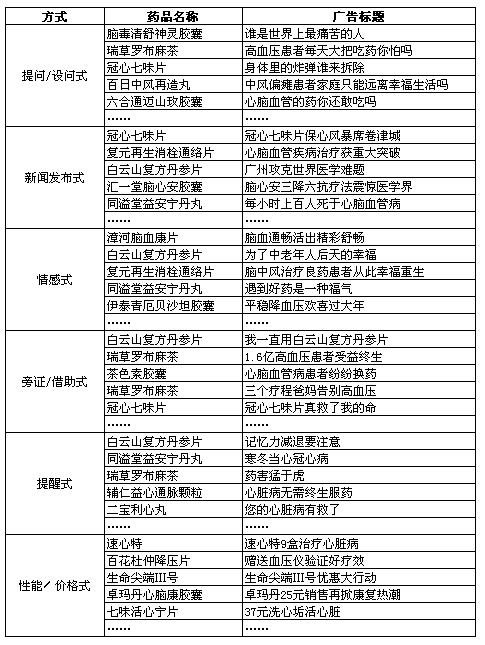 表3:心腦血管用藥常用報(bào)刊廣告標(biāo)題