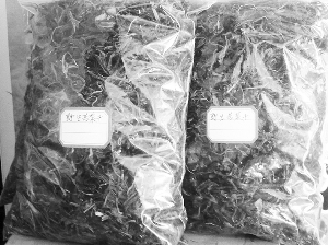 下圖為在農家樂餐廳銷售的曬干野菜。