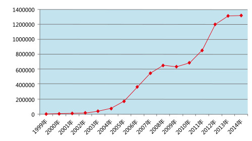 圖1 1999-2014年全國藥品不良反應(yīng)/事件報告數(shù)量增長趨勢