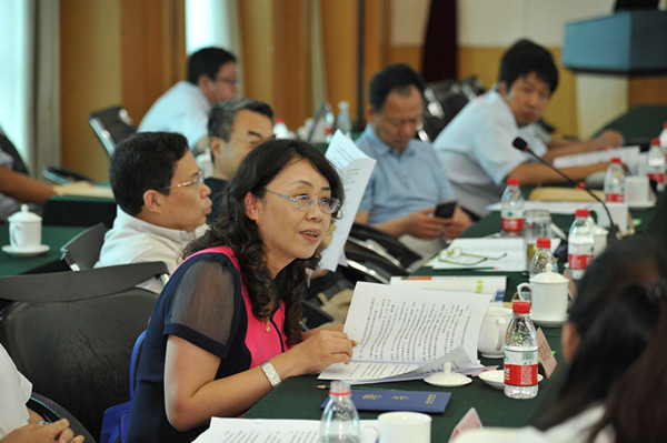 圖為藥品監(jiān)管文化建設(shè)研究專業(yè)委員會成員討論委員會工作制度與工作計(jì)劃。