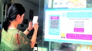 圖為顧客正在掃描“家常菜”餐館二維碼。