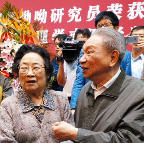 圖為屠呦呦(左)與陳可冀(右)親切談話