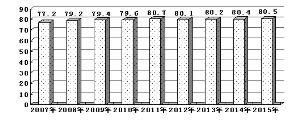 圖:2007~2015年上海市市民食品安全知曉率得分