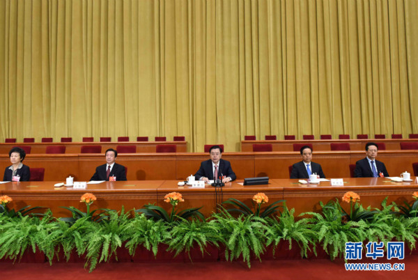 3月4日,十二屆全國人大四次會(huì)議在北京人民大會(huì)堂舉行預(yù)備會(huì)議。全國人大常委會(huì)委員長張德江主持會(huì)議。 新華社記者 饒愛民 攝