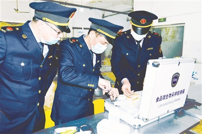 圖為2月14日,執(zhí)法人員深入江西工業(yè)工程職業(yè)技術(shù)學(xué)院抽檢食品質(zhì)量。 黃躍輝 攝