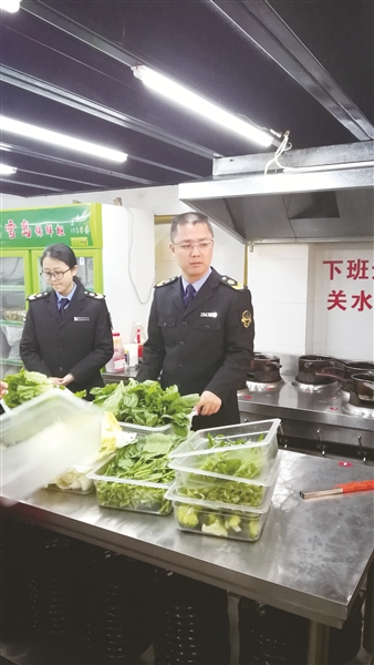 圖為監(jiān)管人員在學(xué)校食堂檢查。