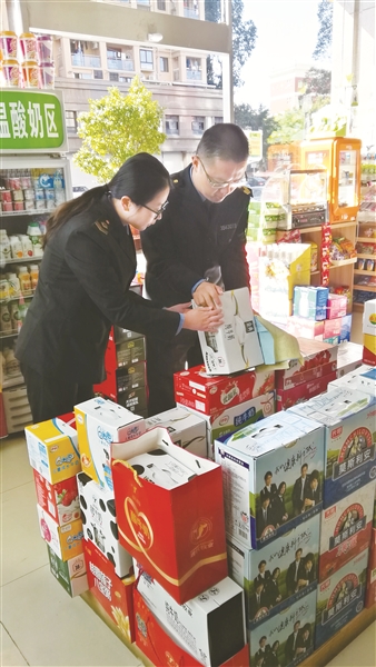 圖為監(jiān)管人員在超市檢查。
