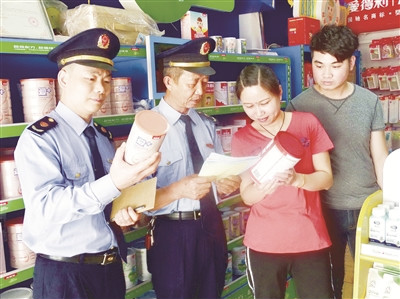 圖為執(zhí)法人員正在檢查兒童奶粉