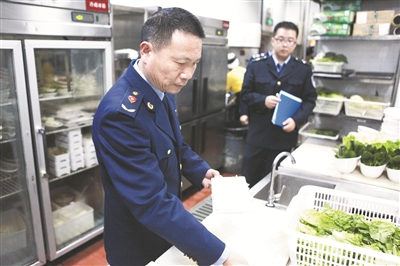 G20峰會期間,在各個接待酒店的后廚,王金超組織駐點監(jiān)督人員實施24小時全過程監(jiān)管,加強對總倉食材交接驗收的監(jiān)督檢查;對風險較高的食材開展快檢;根據(jù)餐飲禁用、慎用清單,進行菜單審核;指導(dǎo)酒店落實廚房員工健康晨檢、消毒、著裝等制度;從凌晨、早餐面點制作到夜晚夜宵供應(yīng),從食材粗加工開始到菜品成型上桌,每一道關(guān)口都嚴格監(jiān)管。