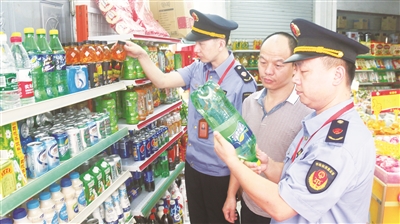 圖為執(zhí)法人員在一鄉(xiāng)鎮(zhèn)商店檢查飲品/攝影報道 王雨林 郭紅華