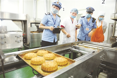 今年,合浦縣局總結(jié)往年經(jīng)驗(yàn),把各項(xiàng)準(zhǔn)備工作都做在了前面?!耙龑?dǎo)企業(yè)加強(qiáng)自我管理,這是食品安全的根本保證。”合浦縣局局長(zhǎng)馮協(xié)臣介紹說,早在6月份,合浦縣局就組織召開了面向月餅生產(chǎn)企業(yè)負(fù)責(zé)人的第一次培訓(xùn)會(huì),以督促企業(yè)落實(shí)主體責(zé)任,推進(jìn)誠(chéng)信體系建設(shè)。8月,該局又面向月餅生產(chǎn)企業(yè)的質(zhì)量安全授權(quán)人召開了第二次培訓(xùn)會(huì),認(rèn)真細(xì)致地向企業(yè)生產(chǎn)負(fù)責(zé)人講解《食品安全法》及生產(chǎn)操作規(guī)范。今年合浦縣局全員上陣,各個(gè)崗位的工作人員每人對(duì)口負(fù)責(zé)幾個(gè)生產(chǎn)企業(yè),每個(gè)人都要學(xué)習(xí)月餅的生產(chǎn)流程,對(duì)質(zhì)量風(fēng)險(xiǎn)關(guān)鍵點(diǎn)進(jìn)行控制,真正做到了生產(chǎn)企業(yè)全覆蓋、生產(chǎn)流程全監(jiān)控。