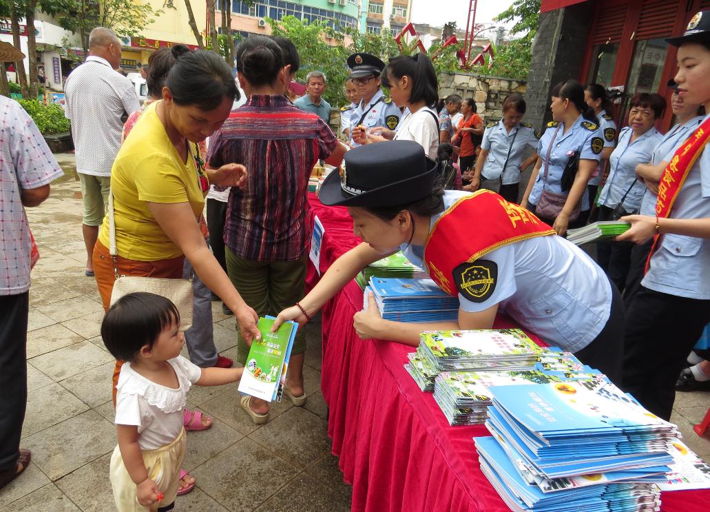 圖為海南省瓊中縣安全用藥月啟動儀式上,一個(gè)小女孩向監(jiān)管人員索要科普小手冊