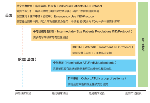 表 美國與歐盟(法國)“同情用藥”的適用范圍及適用申請階段