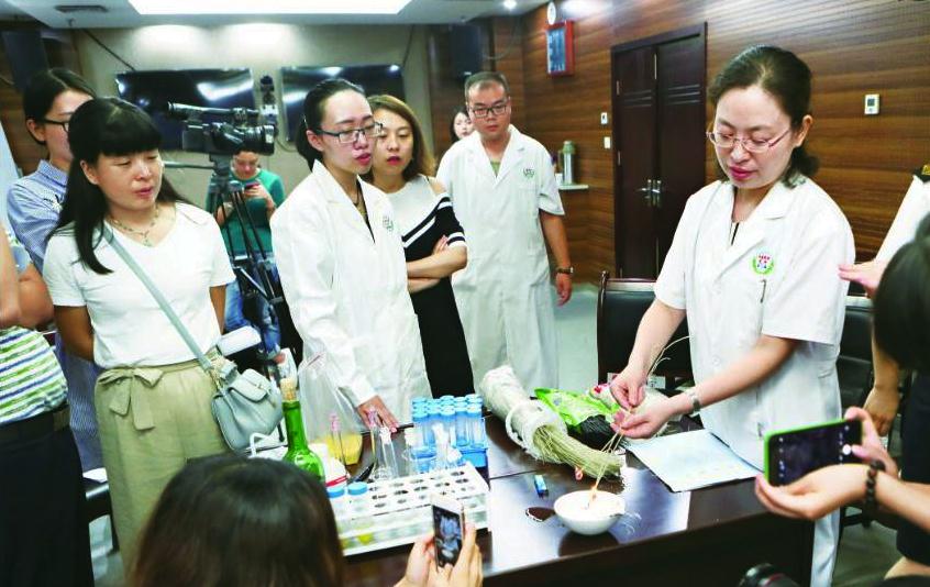 圖為陜西省食藥監(jiān)局工作人員在“借你一雙慧眼——科學(xué)辨別食品安全謠言”沙龍現(xiàn)場進(jìn)行實驗。本報記者賀一辰/攝