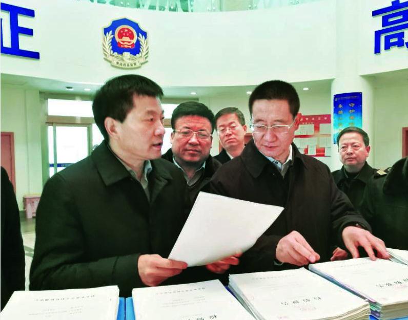 圖為陜西省食品藥品監(jiān)管局局長張小寧(前排右)在寶雞市眉縣調(diào)研食品藥品檢驗檢測工作。蔡玉龍/攝