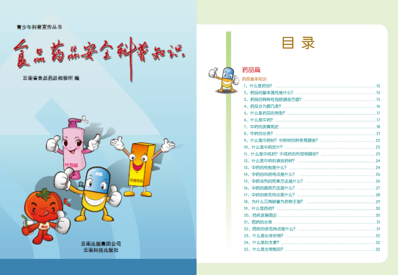 2013年,云南省食品藥品監(jiān)督檢驗研究院組織青年骨干,以“宣傳食品藥品安全科普知識,提高青少年飲食用藥安全防范意識”為主題,編輯了青少年科普宣傳叢書《食品藥品安全知識問答》,宣傳食品、藥品、保健食品、化妝品研發(fā)、生產(chǎn)、檢驗等環(huán)節(jié)的科技知識,宣傳食品、藥品、保健食品、化妝品安全監(jiān)管常識。書籍面世之初便得到了食品藥品監(jiān)管系統(tǒng)內(nèi)同仁們的廣泛認可和高度肯定,還得到了政府部門、中小學校以及新聞媒體等單位的贊譽和認可。隨著書籍影響面逐漸擴大,很多單位或個人甚至慕名前來索書,但由于此書以贈閱為主,數(shù)量實在有限,未能滿足很多渴求食品藥品安全知識人群的需要。