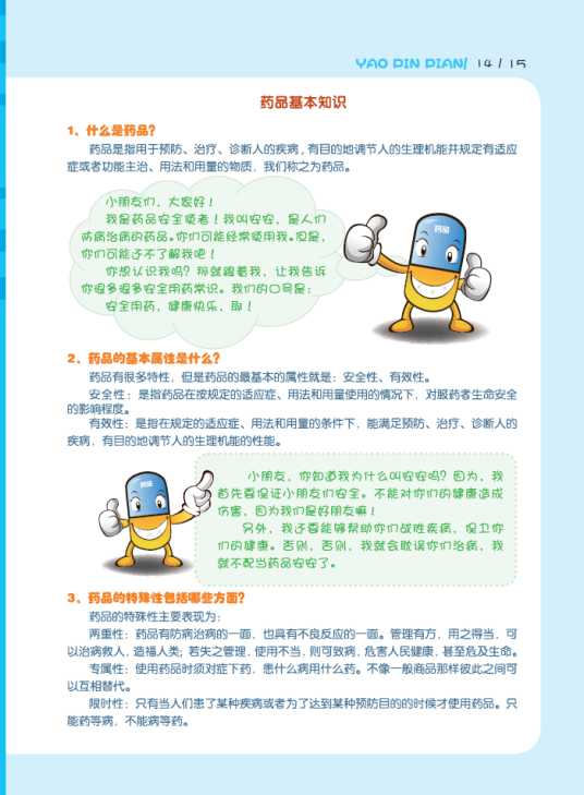 (三)該作品適用性強。該作品涵蓋了藥品、食品、保健食品、化妝品基本知識、安全知識和安全監(jiān)管知識,并運用多種形式將枯燥乏味的理論知識和深奧的專業(yè)知識,通過四位卡通健康使者,利用兒童語言生動活潑地表現(xiàn)出來,成功解決了科普讀物的通俗性與趣味性問題,大大增強了作品的適用性,可謂老少皆宜,雅俗共賞。該作品將知識編輯成冊,便于學校、家庭作為青少年食品藥品安全教育的教輔材料或課外讀物,加強青少年食品藥品安全科普教育。