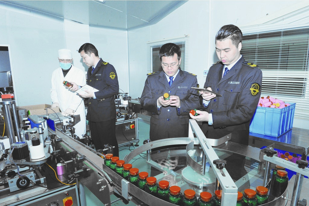 圖為廣西壯族自治區(qū)食品藥品監(jiān)管局行政執(zhí)法人員