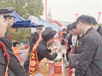 “12331——助力健康中國(guó)夢(mèng),食藥安全伴你行”主題宣傳活動(dòng)中,江西省食品藥品監(jiān)管局工作人員在江西農(nóng)業(yè)大學(xué)向?qū)W生們介紹辨別真假保健食品的方法。 本報(bào)記者 譚彩丹 攝