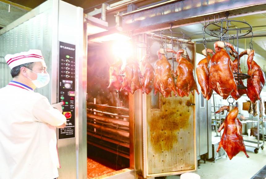 圖為佛山市集中加工中心的小作坊使用滑軌將待加工品自動(dòng)導(dǎo)入烤箱,避免手動(dòng)污染。佛山市局供圖