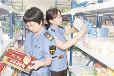 圖為執(zhí)法人員在查看藥品有效期/攝影報道 李玉蘭 張皓亮