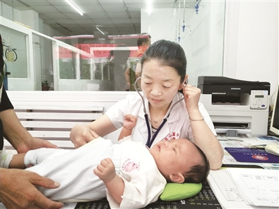 張小菊正在為小患者看病。
