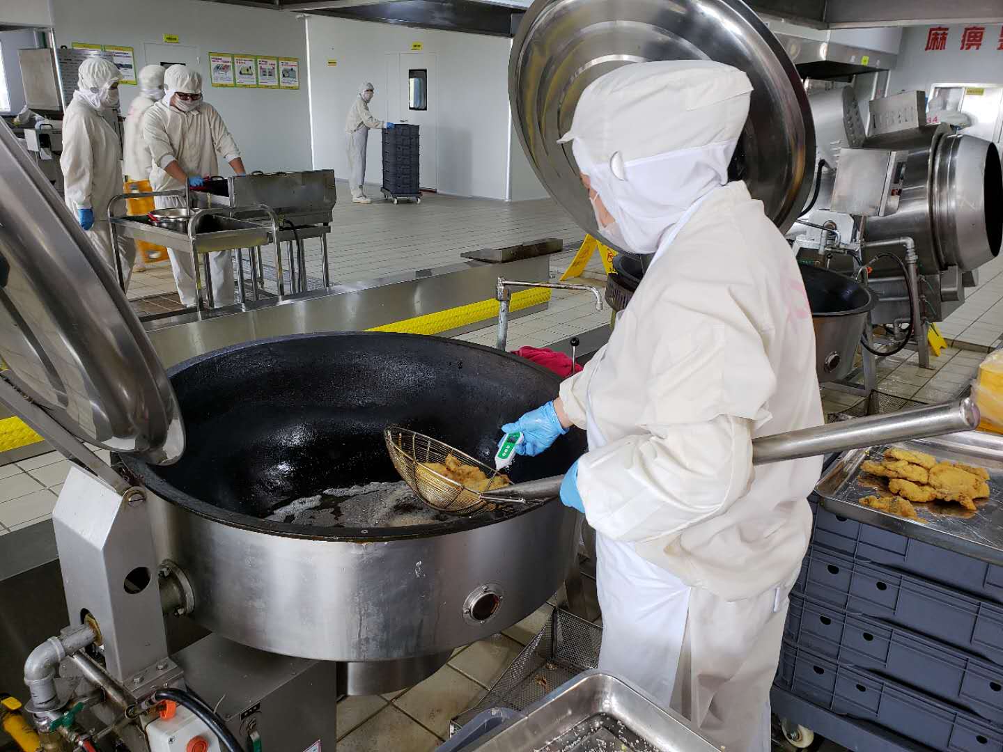 隨后執(zhí)法人員來到食品加工區(qū),根據(jù)要求熱鏈盒飯需全程熱鏈保存,且中心溫度始終保持在60℃以上?,F(xiàn)場,執(zhí)法人員實測一盆剛剛出鍋的炸豬排,實測中心溫度為87℃。執(zhí)法人員告訴記者,對于煎炸食物,規(guī)范要求為70℃以上,“保持一個比較高的中心溫度,能夠防止后續(xù)細(xì)菌的繁殖。”