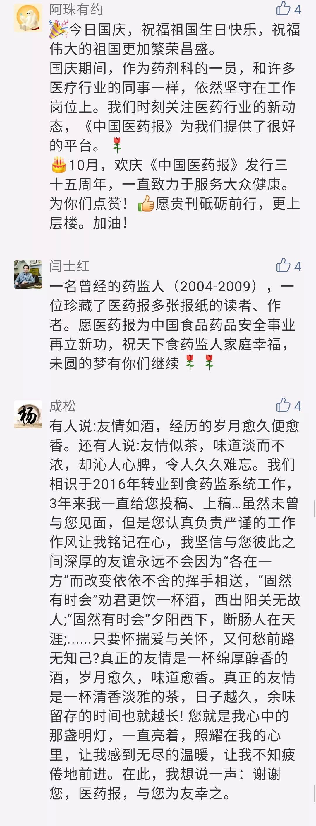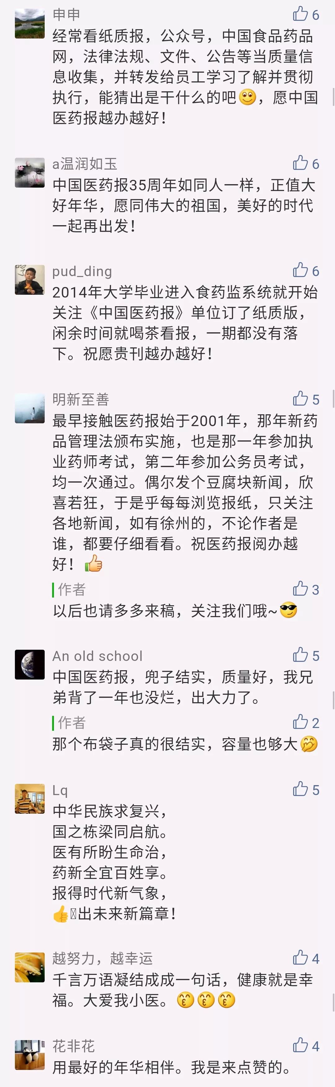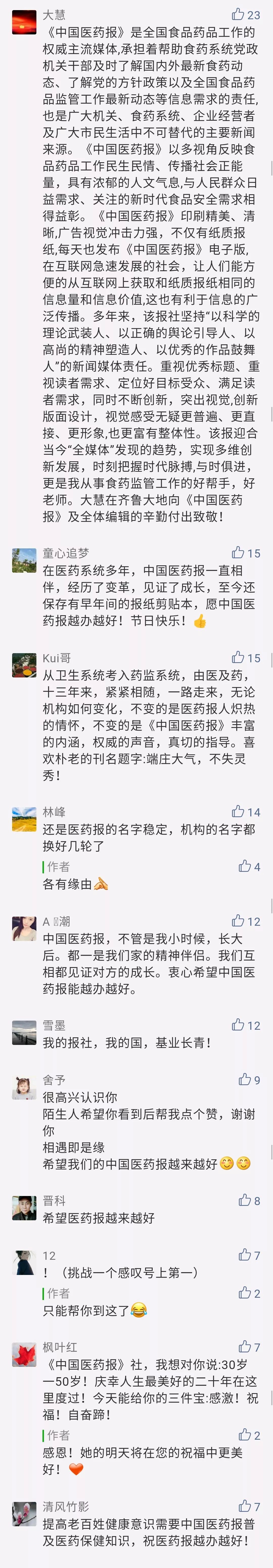 紙短情長,每一條評論都讓小編為之動容?!吨袊t(yī)藥報》在眾多祝福中定當(dāng)不負(fù)眾望,不忘初心,砥礪前行!