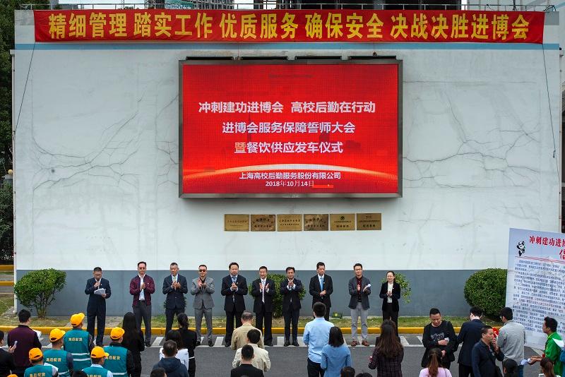 上海高校后勤服務(wù)股份有限公司舉行的進博會服務(wù)保障誓師大會現(xiàn)場。 盧衛(wèi)平 攝