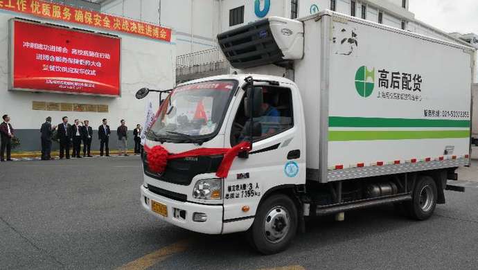 “出發(fā)——”10月14日,隨著上海高校后勤服務(wù)股份有限公司總經(jīng)理陳輝的一聲令下,四輛“身披”大紅花的廂式物流車從地處寶山豐翔路的上海高校冷鏈物流基地緩緩駛出,朝著距國家會展中心7公里的光明乳業(yè)上海領(lǐng)鮮物流中轉(zhuǎn)總倉進發(fā)。