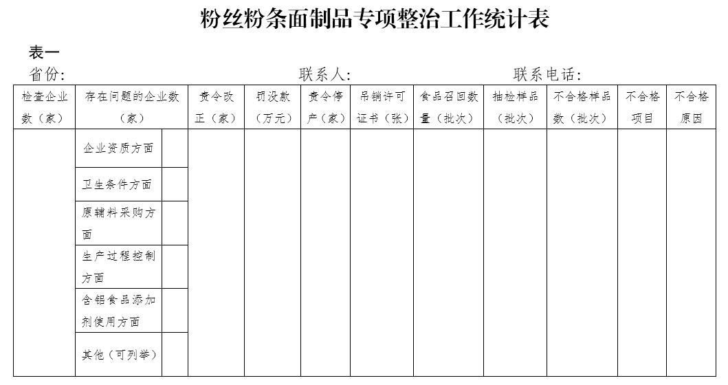 附件:粉絲粉條面制品專項整治工作統(tǒng)計表