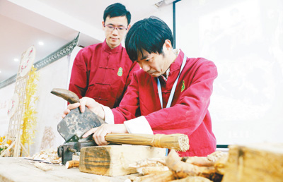 在浙江省桐廬縣近日舉辦的首屆桐君“定三品”中藥飲片展會上,制藥技師展示中藥古法炮制技藝。人民視覺