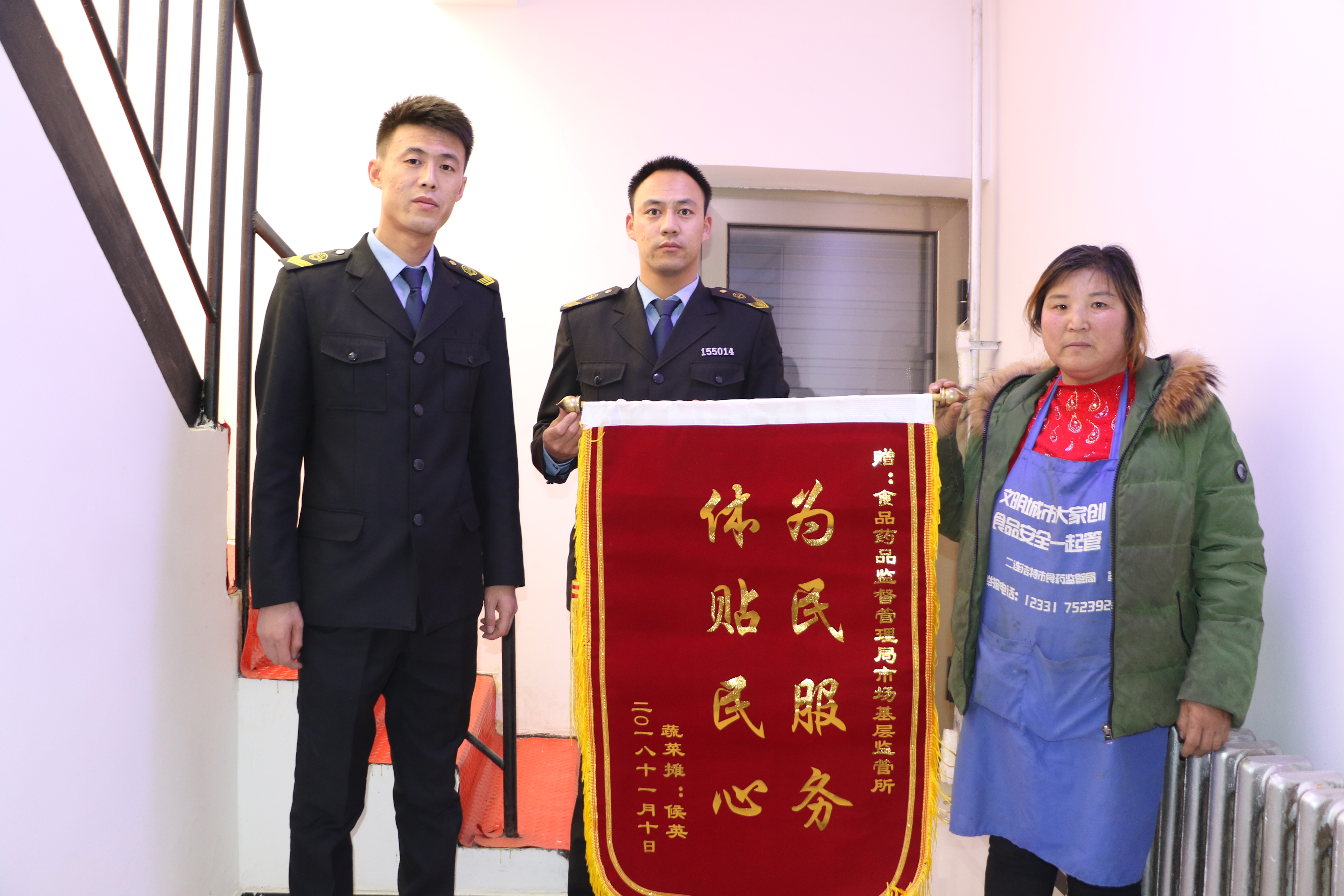 寶鼎菜市場(chǎng)商戶給二連浩特市食品藥品監(jiān)督管理局送來了感謝的錦旗