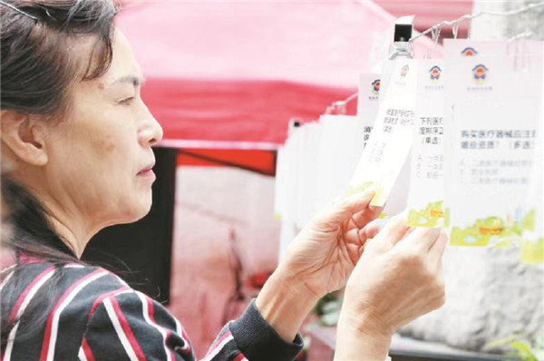 圖為市民在參與藥械科普有獎猜謎游戲。 戴秋菊 攝