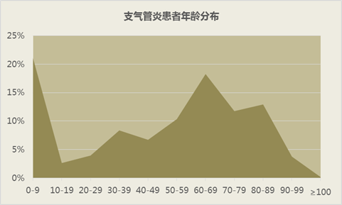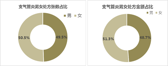 整體處方市場在性別方面,無明顯性別差異;在年齡方面,0~9歲兒童和60~70歲老年人容易患上支氣管炎。