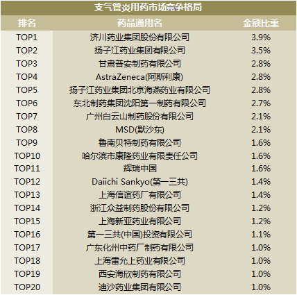 支氣管炎用藥市場集中化程度有進一步上升空間