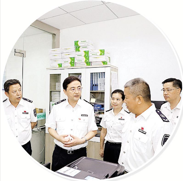 2018年6月26日,深圳市市場和質(zhì)量監(jiān)管委黨組書記、主任鄺兵(左二)帶隊調(diào)研鹽田區(qū)“一街一車一室”工作建設(shè)情況。