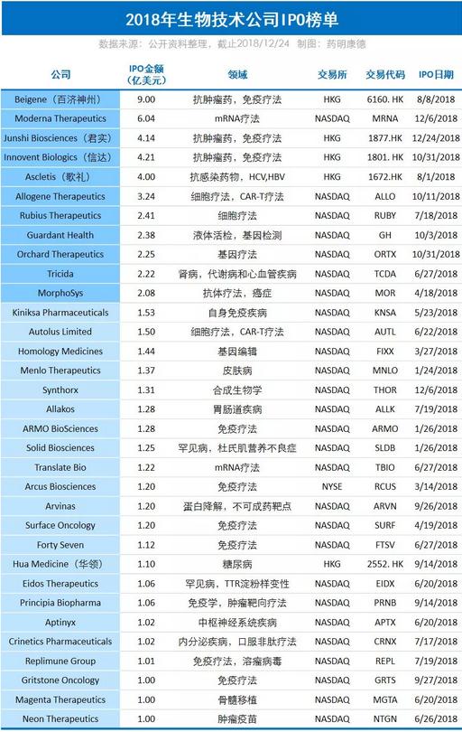 2018生物醫(yī)藥領(lǐng)域年度IPO之最