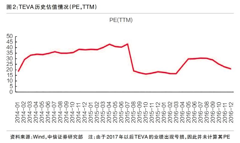 其次,從國(guó)際仿制藥企業(yè)的估值來看,全球排名前二的仿制藥公司——TEVA和Mylan的估值也長(zhǎng)期保持在20X PE(TTM)左右的估值水平(見圖2)。經(jīng)歷過此前的調(diào)整,目前國(guó)內(nèi)仿制藥企業(yè)的估值已經(jīng)處于這一位置,有些甚至低于20X PE(TTM),筆者認(rèn)為其估值繼續(xù)下跌的空間已經(jīng)不大。同時(shí),部分仿制藥企業(yè)已經(jīng)開始了向創(chuàng)新藥的轉(zhuǎn)型,考慮到創(chuàng)新藥企業(yè)可以享受更高的估值,我們認(rèn)為國(guó)內(nèi)藥企的估值已經(jīng)位于相對(duì)底部。