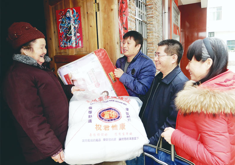 節(jié)前慰問送溫暖,濃濃真情暖民心。新春佳節(jié)將至,各地食品藥品監(jiān)管部門紛紛深入定 點(diǎn)扶貧村,走進(jìn)貧困戶家中噓寒問暖、送衣送物,并帶去節(jié)日的祝福,傳遞脫貧致富的堅(jiān)定信念。本版用一組鏡頭,向扶貧攻堅(jiān)的干部職工致以崇高敬意!向?yàn)槊撠毝鴬^斗的鄉(xiāng)親們致以 新年最溫暖的祝福!