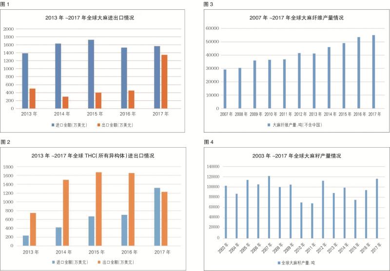 據(jù)統(tǒng)計(jì),2017年,全球大麻進(jìn)口總額為1566.64萬美元,出口總額為1347.28萬美元(見圖1);全球THC(所有異構(gòu)體)進(jìn)口總額為1314.79萬美元,出口總額為1225.98萬美元(見圖2)。