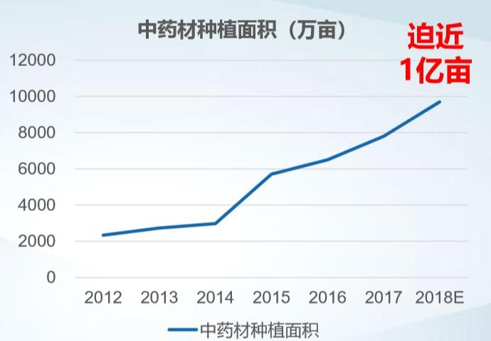 圖12 當前全國中藥材的種植面積接近一億畝,產(chǎn)量遠遠大于用量。