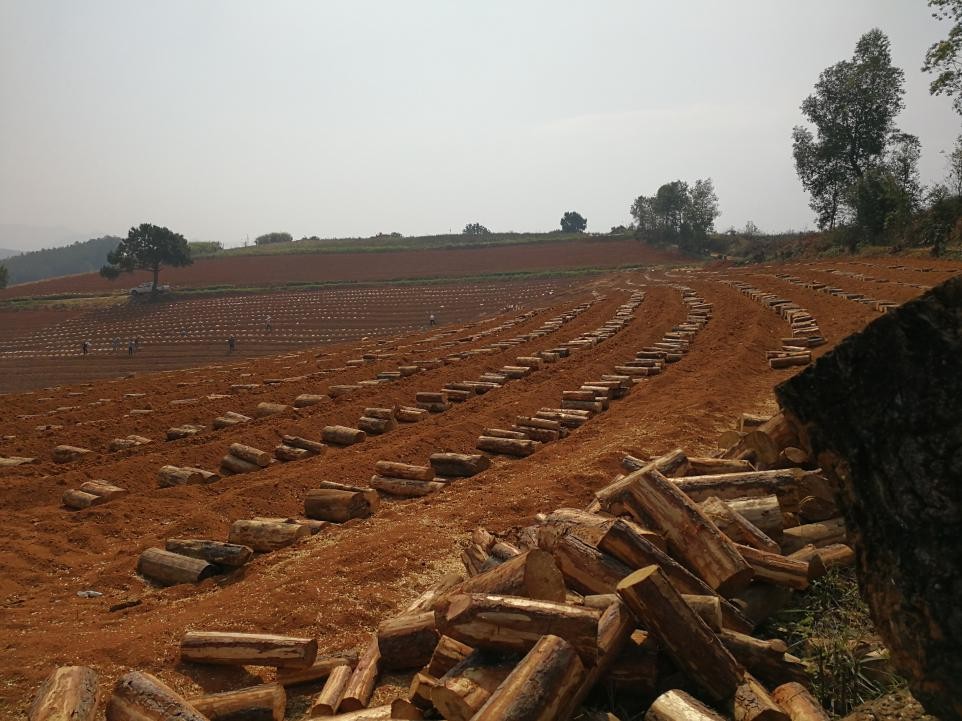 圖13 云南景谷縣茯苓下種所用的松木節(jié)段,場面震撼,用量驚人。