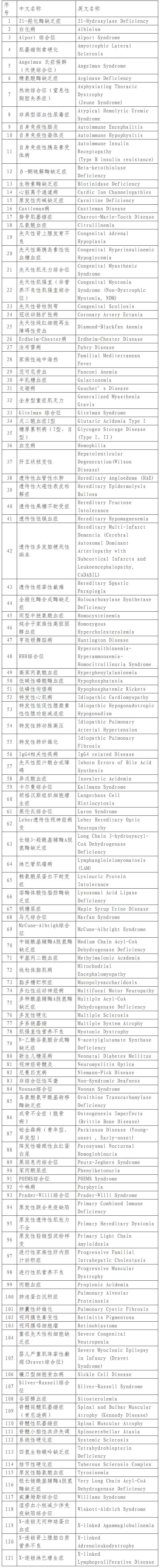 第一批罕見病目錄