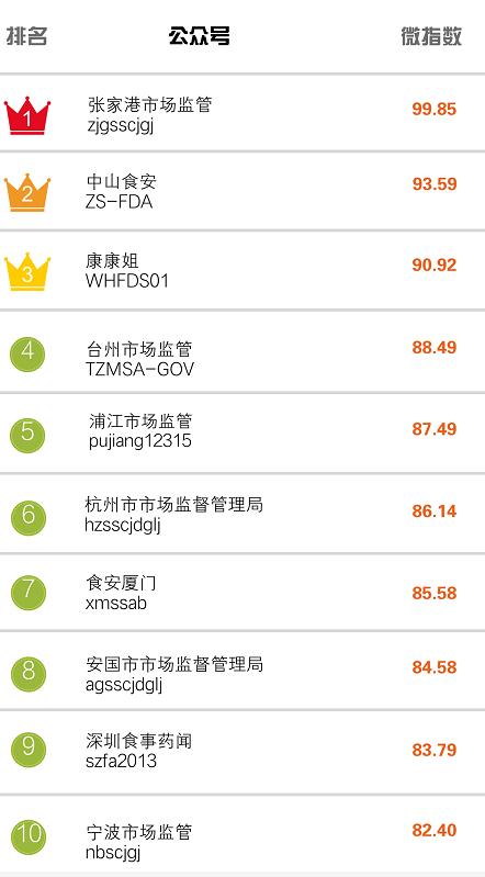 最新TOP10 | 食藥監(jiān)管部門(mén)政務(wù)微信排行榜