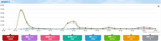 從信息量走勢來看,以3月8日~4月3日14時(shí)為監(jiān)測時(shí)間段,如下圖所示,輿情整體呈現(xiàn)“波浪式”特征,網(wǎng)民關(guān)注度遠(yuǎn)高于媒體關(guān)注度。