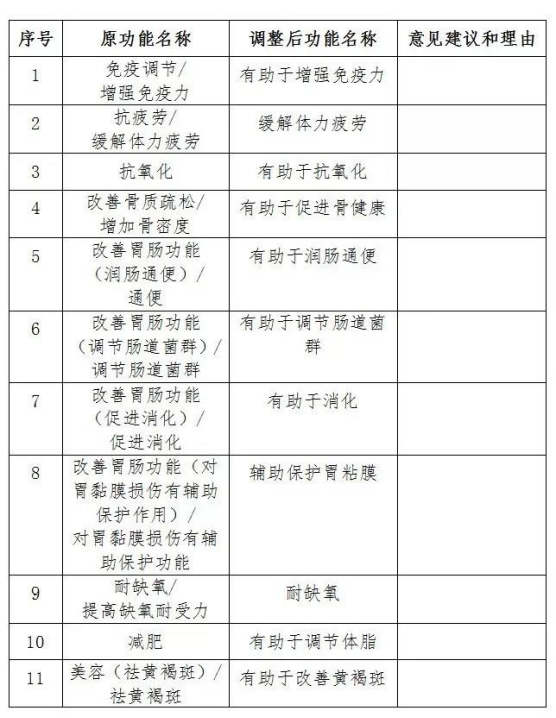1、首批擬調(diào)整功能聲稱(chēng)表述的保健功能