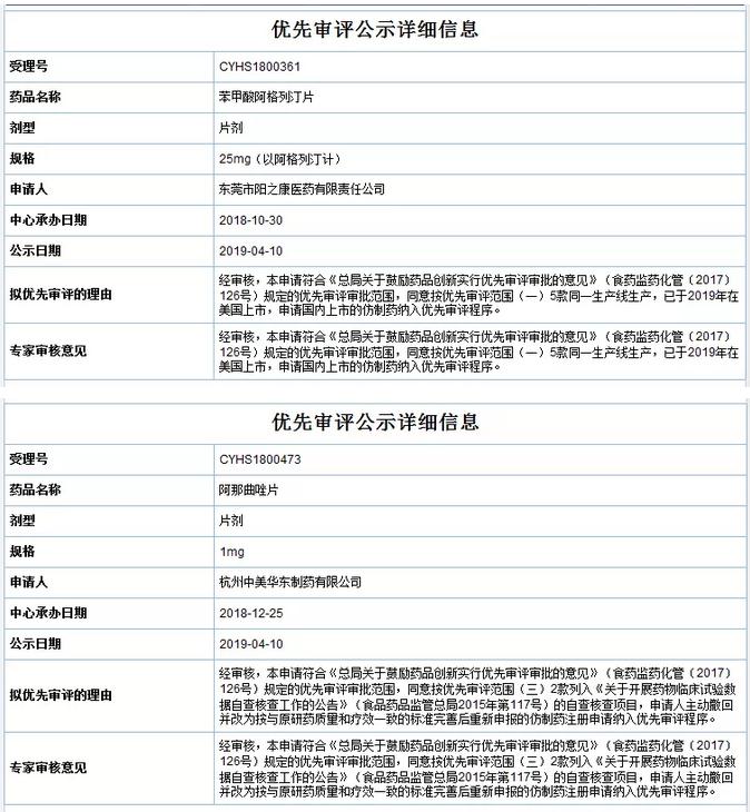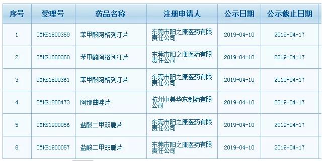 4月10日,藥審中心網(wǎng)站擬優(yōu)先審評公示欄目新增6個品種。東莞市陽之康醫(yī)藥有限責(zé)任公司的苯甲酸阿格列汀片(規(guī)格為6.25mg、12.5mg、25mg)、杭州中美華東制藥有限公司的阿那曲唑片、東莞市陽之康醫(yī)藥有限責(zé)任公司的鹽酸二甲雙胍片(規(guī)格為500mg、850mg)有望加入優(yōu)先審評行列。