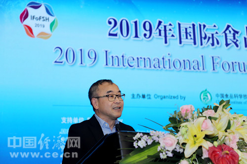 圖為國際食品科學院院士饒平凡在2019年國際食品安全與健康大會上主持。(經(jīng)濟日報-中國經(jīng)濟網(wǎng)記者 韓肖/攝)