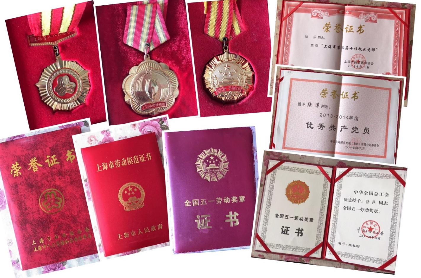2014年,陸萍榮獲全國五一勞動獎?wù)?,同年榮獲“上海市第三屆十佳執(zhí)業(yè)藥師”稱號。2015年,榮獲“上海市勞動模范”稱號。2016年,陸萍所在工作室被授予“浦東新區(qū)勞模創(chuàng)新工作室”稱號。